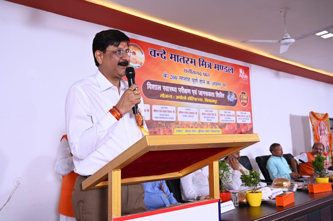 यह आयोजन वंदे मातरम् मित्र मंडल छत्तीसगढ़ प्रांत द्वारा अपनी सेवा यात्रा के 200 सप्ताह पूर्ण होने के उपलक्ष्य में किया गया। इस शिविर में अपोलो हॉस्पिटल्स बिलासपुर ने विशेषज्ञ चिकित्सकों की एक टीम के साथ सक्रिय सहयोग दिया, जबकि आंखों की जांच की सुविधा टाइटन आई प्लस द्वारा प्रदान की गई।
