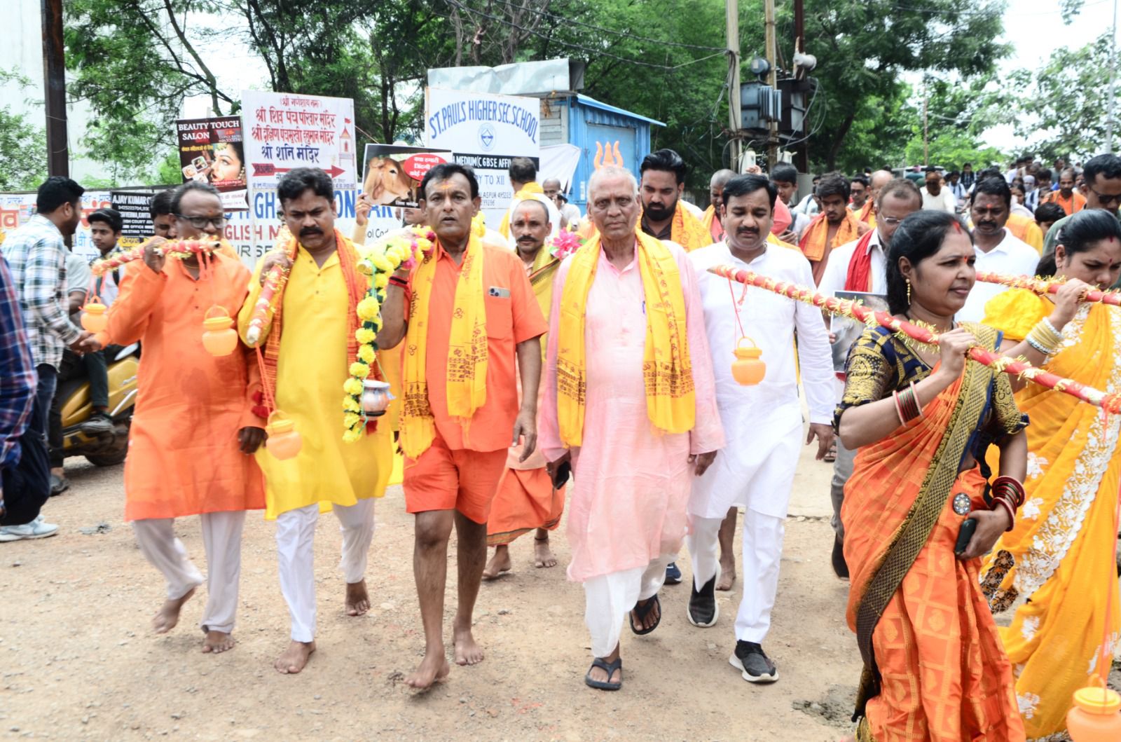 0 जिला कांग्रेस कमेटी के अध्यक्ष विजय केशरवानी की अगुवाई में तिफरा के बछेरा तालाब से निकली कांवर यात्रा