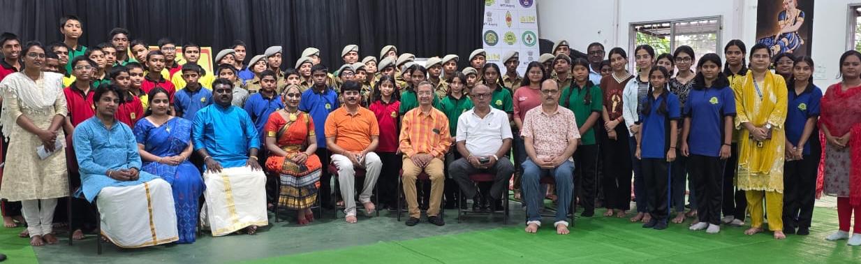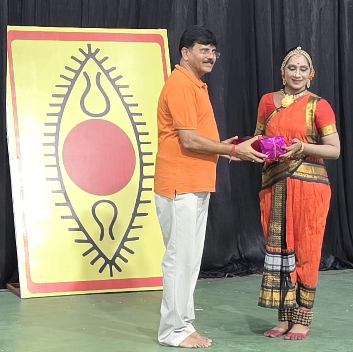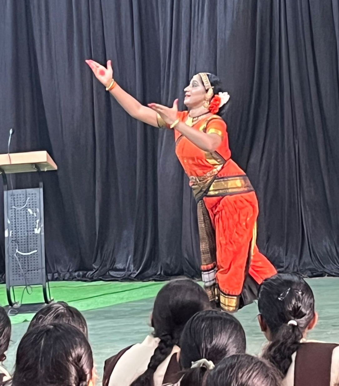 अपने प्रस्तुति में उन्होंने दुर्गा स्तुति, कृष्ण लीला और महाभारत के एक प्रभावशाली प्रस्तुतीकरण – द्रौपदी चीरहरण शामिल थे। उनके प्रदर्शन ने दर्शकों को मंत्रमुग्ध कर दिया, जिसमें कुचिपुड़ी नृत्य की गहराई, भाव और कहानी कहने की शक्ति का खूबसूरती से प्रदर्शन किया गया। उनके साथ सुश्री सौम्या (वोइलिन) , श्री विग्नेश (मृदंग) , श्री कोट्टकल (गायक) ने मिलकर लय, राग और अभिव्यक्ति का एक भावपूर्ण मिश्रण प्रस्तुत किया, जिसने छात्रों और कर्मचारियों, दोनों के लिए अनुभव को समृद्ध बनाया।
