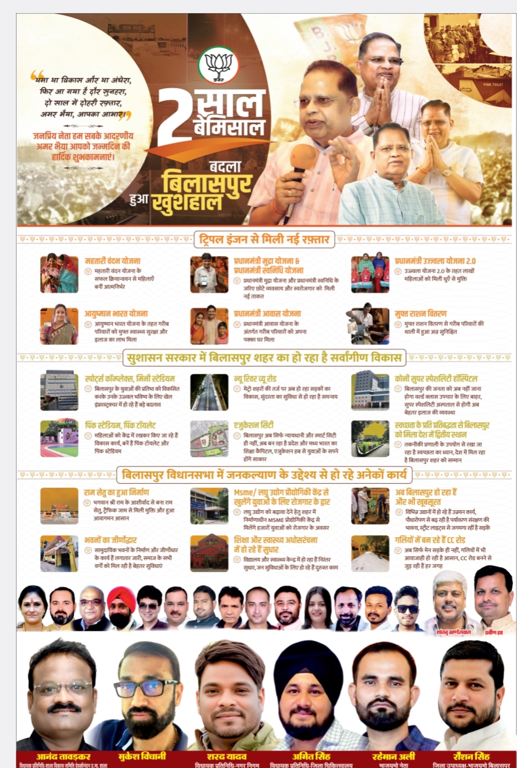 बिलासपुर। भारतीय जनता युवा मोर्चा के नेताओं ने पूर्व मंत्री और नगर विधायक अमर अग्रवाल का जन्मदिन हर्षोल्लास के साथ भव्य तरीके से मनाया । नगर विधायक सुबह जेल चौक के समीप मंदिर में पूजा करके अपना दिन का शुरूआत किये. ।उनके निवास कार्यालय में सुबह से रात्रि तक शहर एवं जिले के आसपास समेत प्रदेश के लोगों का बधाई देने वालों का निरंतर जमावड़ा लगा रहा. नगर विधायक सामाजिक जीवन में जब से जुड़े हैं तब से अपने जन्मदिन के अवसर पर शहर के स्थित स्कूलों में बच्चों के लिए हमेशा से केक बंटवाने का कार्यक्रम करते हैं इस वर्ष भी सभी स्कूलों में केक बटवाया गया।