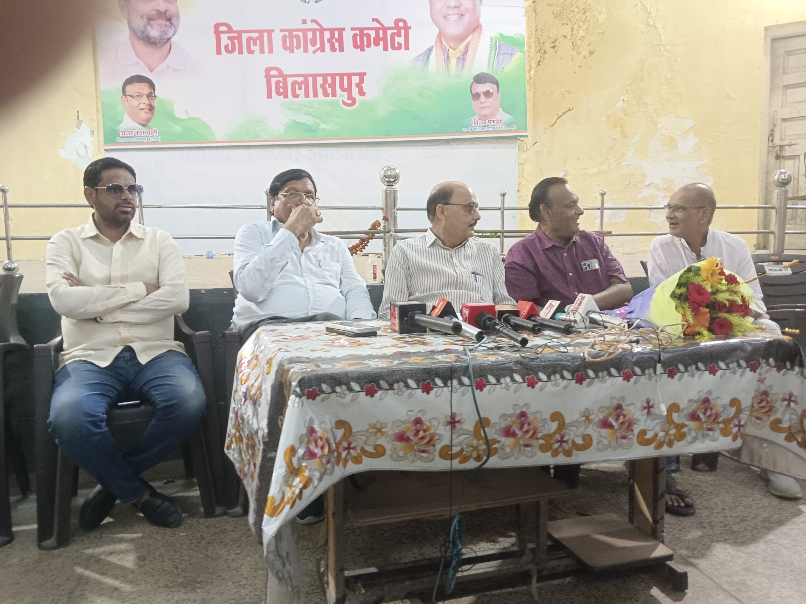 कांग्रेस भवन में प्रदेश कांग्रेस कमेटी के निर्देश पर आयोजित ,प्रेसवार्ता में शहर अध्यक्ष विजय पांण्डेय,ग्रामीण अध्यक्ष विजय केशरवानी ,प्रवक्ता ऋषि पांण्डेय, ब्लॉक अध्यक्ष जावेद मेमन भी उपस्थित थे