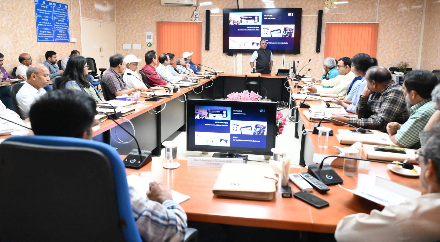 सोलापुर, 14 अक्टूबर 2025: एनटीपीसी सोलापुर में दिनांक 13 अक्टूबर 2025 को वरिष्ठ अधिकारियों के लिए संचार कार्यशाला का आयोजन किया गया। इस कार्यशाला का मुख्य उद्देश्य वरिष्ठ अधिकारियों को प्रभावी संवाद व मीडिया प्रबंधन के प्रति जागरूक करना था। इस कार्यशालाका संचालन सैय्यद रबी हाशमी, निदेशक, प्रेस सूचना ब्यूरो (मुंबई) तथा जयादेवी पुजारी स्वामी, उपनिदेशक, प्रेस सूचना ब्यूरो (मुंबई) द्वारा किया गया। दोनों वक्ताओं ने प्रतिभागियों के साथ जनसंचार के विभिन्न पहलुओं पर चर्चा कर, अपने अनुभव साझा किए।