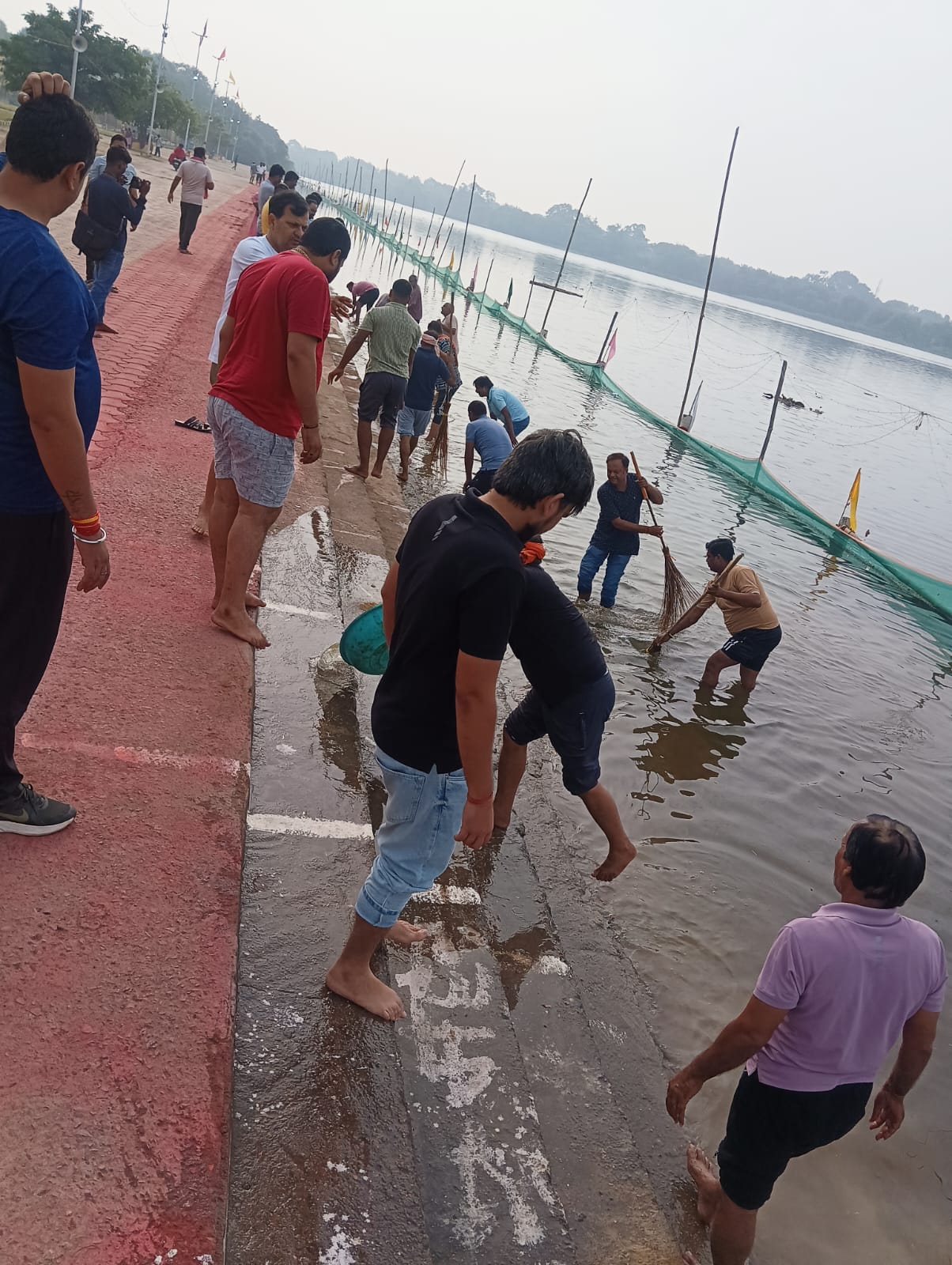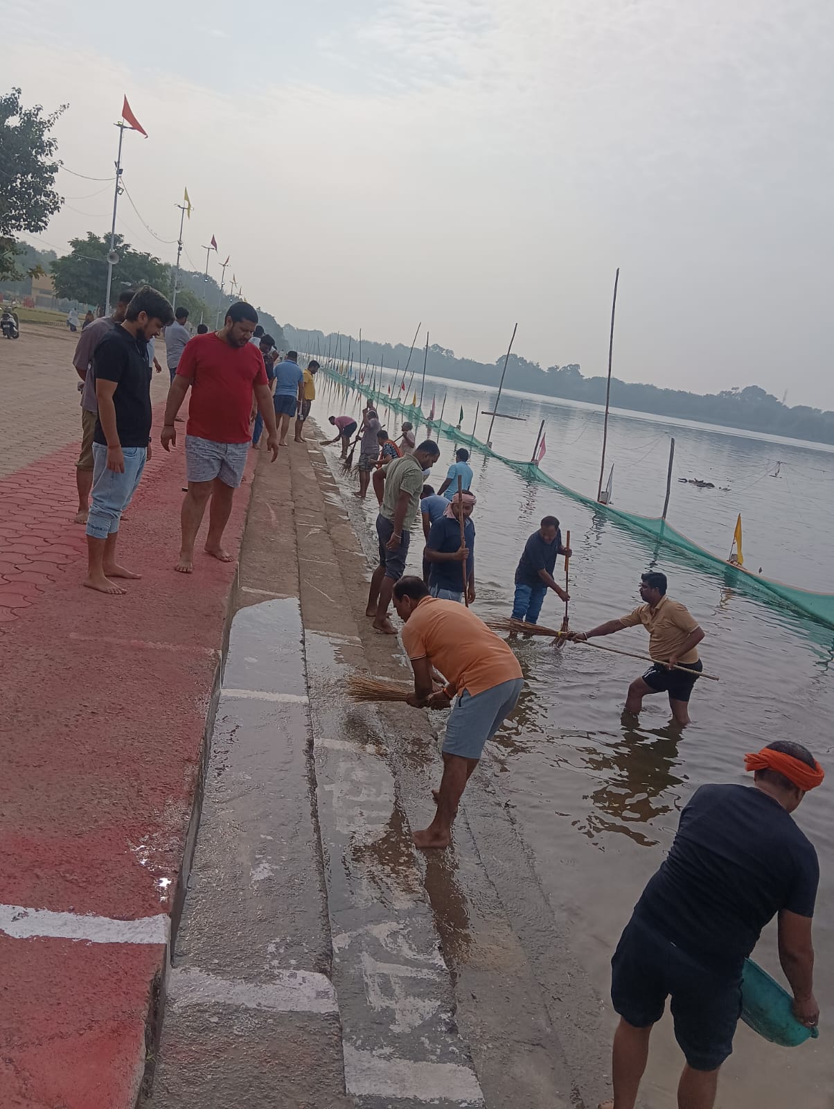 *बिलासपुर। संस्कारधानी बिलासपुर में सूर्य उपासना का सबसे बडा महापर्व प्रारंभ हो चुका है। 25 अक्टूबर शनिवार को अरपा मैया की महाआरती की गई और आज एशिया के सबसे बड़े स्थाई छठ घाट पर बड़ी संख्या में स्वयंसेवकों ने श्रमदान करके घाट की सफाई पूर्ण कर लि है। सुबह 7 बजे से नदी और घाट की साफ सफाई प्रवीण झा जी के नेतृत्व में की गई इस दौरान भक्तों में उत्साह देखने लायक था।*