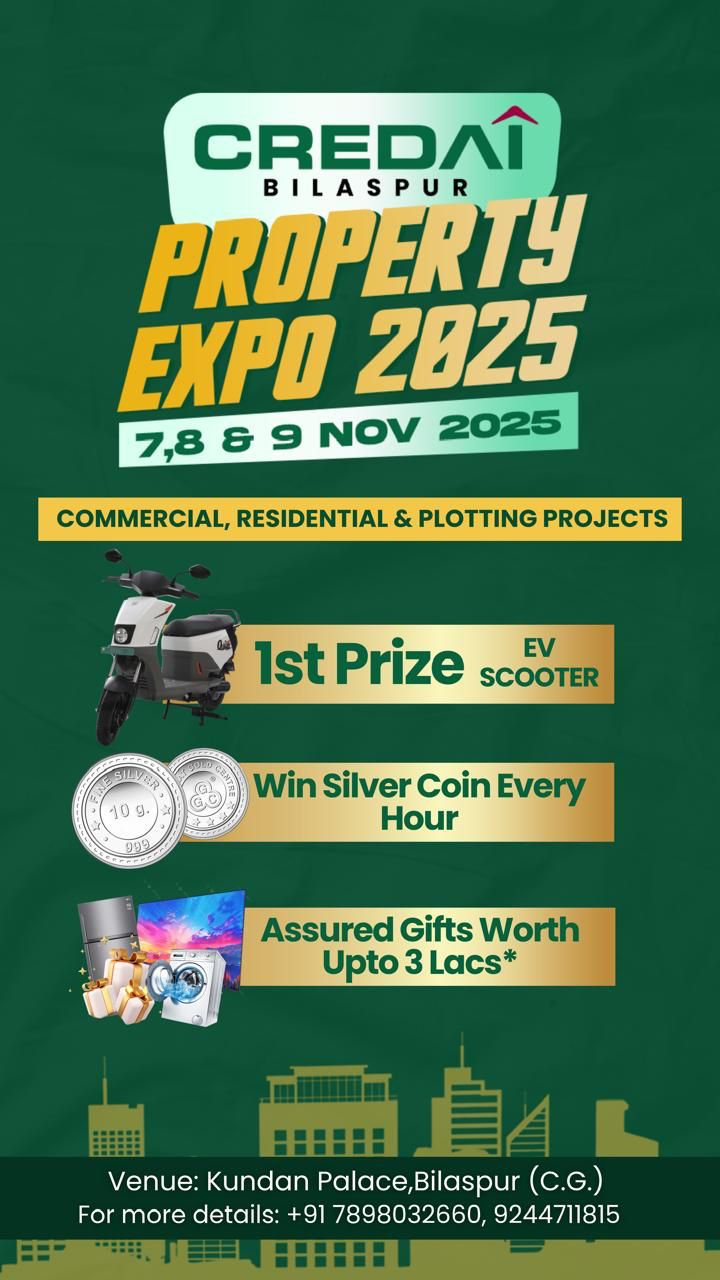 बिलासपुर। शहर रियल एस्टेट सेक्टर में एक नया अध्याय जोड़ने जा रहा है। फॉर्च्यून एलिमेंट्स द्वारा प्रस्तुत CREDAI Property Expo 2025 का भव्य आयोजन आगामी 7, 8 एवं 9 नवम्बर 2025 को कुंदन पैलेस, श्रीकांत वर्मा मार्ग, बिलासपुर (छत्तीसगढ़) में किया जाएगा।