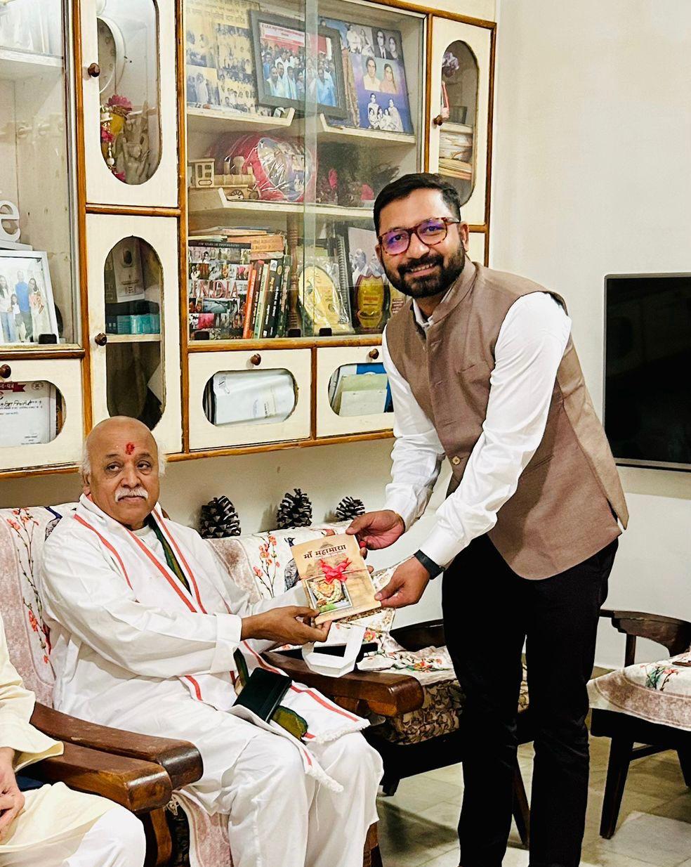 बिलासपुर ।विश्व हिंदू परिषद के पूर्व अंतर्राष्ट्रीय अध्यक्ष और बजरंग दल के राष्ट्रीय अध्यक्ष प्रवीण तोगड़िया के बिलासपुर प्रवास पर उनका आत्मीय स्वागत करते हुए उन्हें -डॉ पालेश्वर प्रसाद शर्मा कृत पुस्तक मां महामाया , दिव्य ज्योति धाम रतनपुर” चिरंजीव अनन्य शर्मा (पौत्र डॉ पालेश्वर प्रसाद शर्मा) द्वारा भेंट किया गया ।