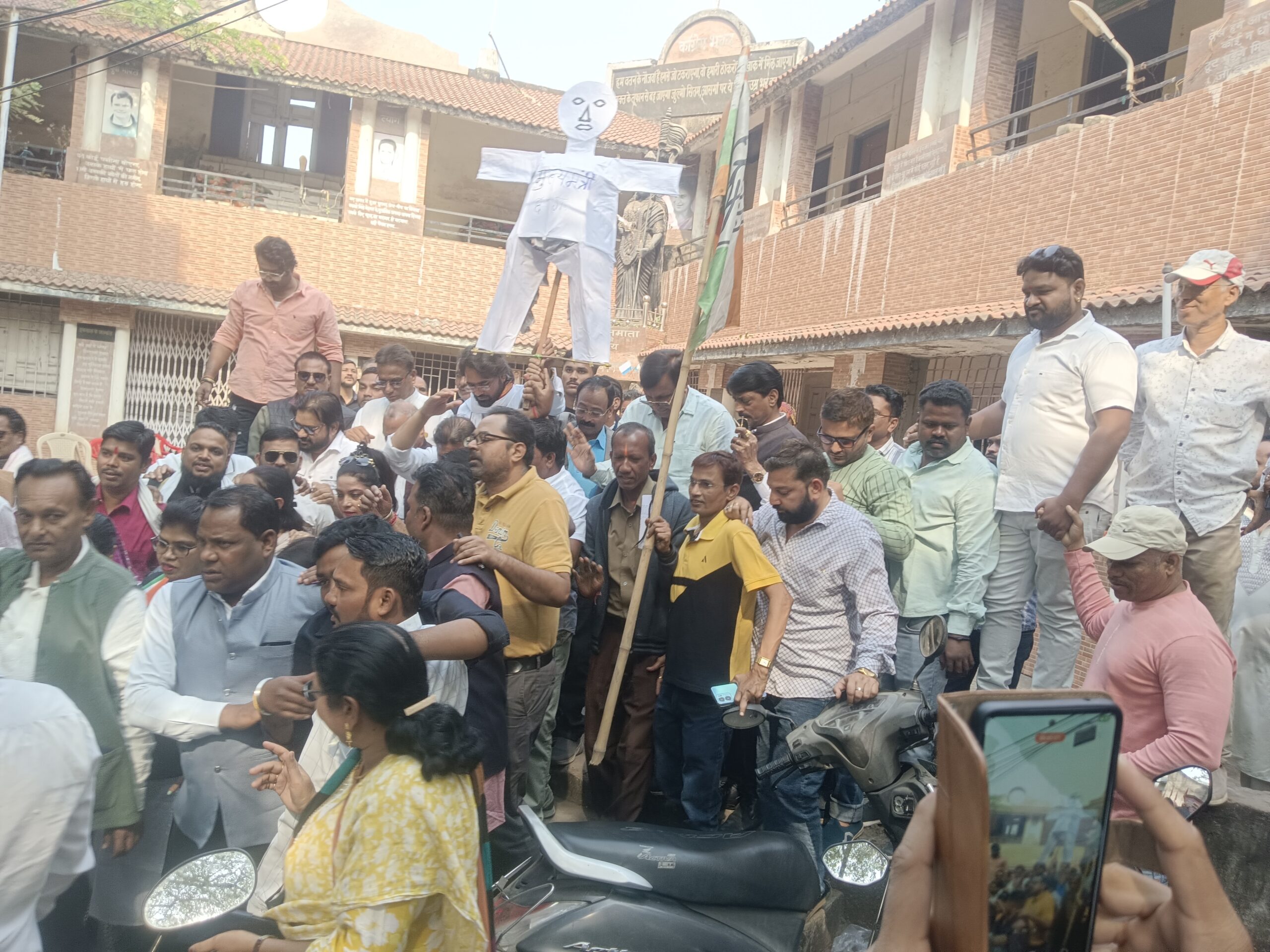 बिलासपुर । कांग्रेस नेताओं ने नेहरू चौक में पुलिस को चकमा देकर मुख्यमंत्री का पुतला जलाया । कांग्रेस के नवनियुक्त जिला अध्यक्ष शहर सुधांशु मिश्रा और ग्रामीण अध्यक्ष महेंद्र गंगोत्री ने नियुक्ति के दूसरे ही दिन राज्य सरकार के खिलाफ आंदोलन का आगाज कर दिया है।
