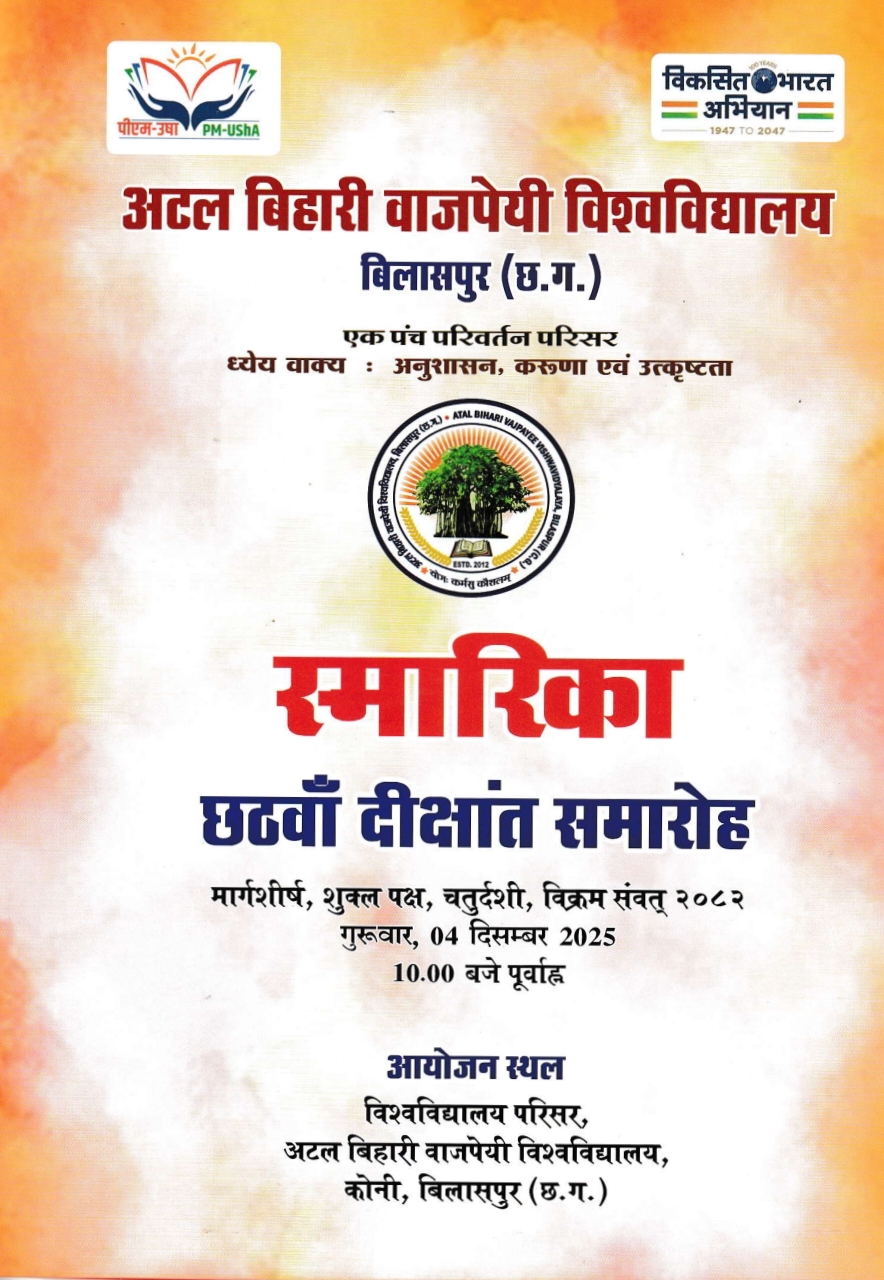 बिलासपुर। अटल बिहारी वाजपेयी विश्वविद्यालय में दीक्षांत समारोह तो संपन्न हो गया लेकिन कई अनसुलझे प्रश्न भी छोड़ गया है । वि वि की स्थापना जिन उद्देश्यों की पूर्ति के लिए की गई थी आज उन उद्देश्यों की धज्जियां उड़ाई जा रही है। छत्तीसगढ़िया लोगों का बाहरी लोगों द्वारा खुलकर अपमान और उपेक्षा की जा रही है । दीक्षांत समारोह में इसकी बानगी स्पष्ट तौर पर दिख गई ।
