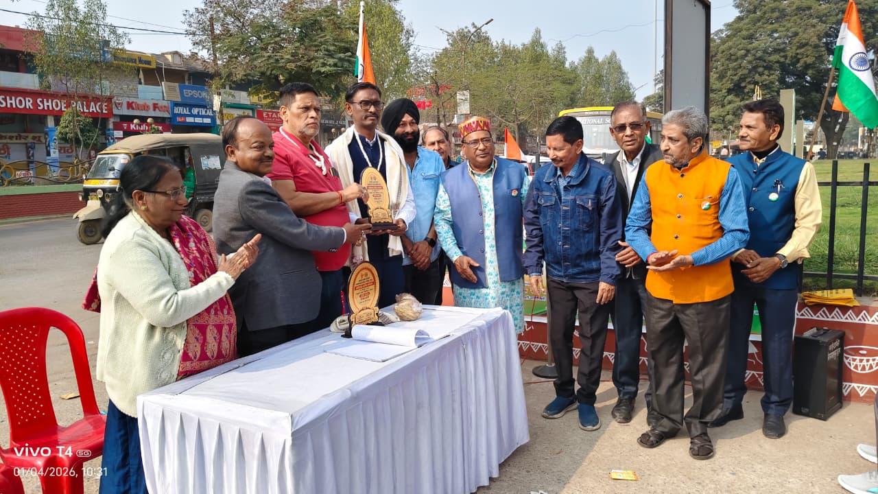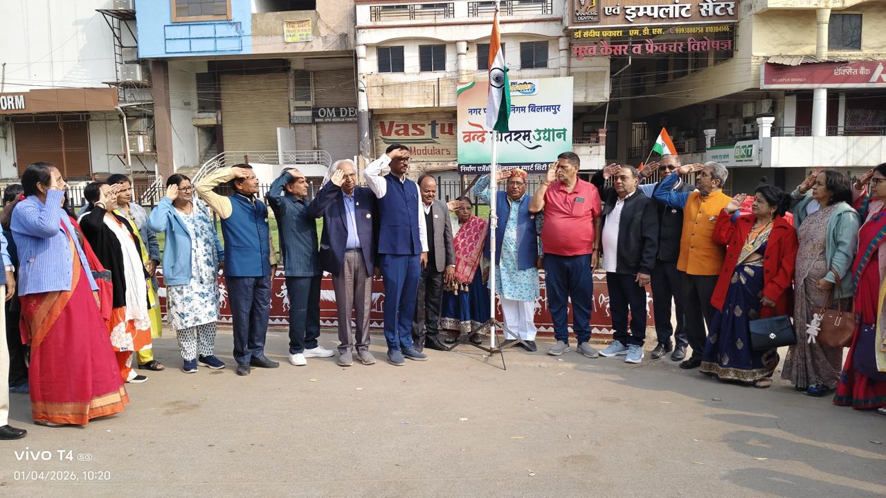 कार्यक्रम के प्रारंभ में ठीक प्रातः 10 बजे राष्ट्रीय ध्वज वंदन महापौर पूजा विधानी,सभापति विनोद सोनी ,अपर आयुक्त ख़ज़ांची ,प्रदेश अध्यक्ष मुरली खंडेलवाल के हाथों सम्पन्न हुआ। ध्वज वाहक संयोजक चन्द्र प्रकाश बाजपेयी ने गगन भेदी नारों से उत्साह भर दिया ।