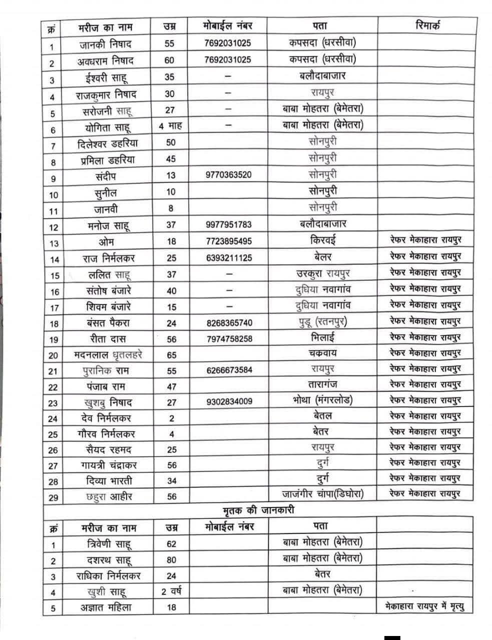 अज्ञात युवती (लगभग 18 वर्ष) – जिनकी मौत इलाज के दौरान रायपुर के मेकाहारा अस्पताल में हुई